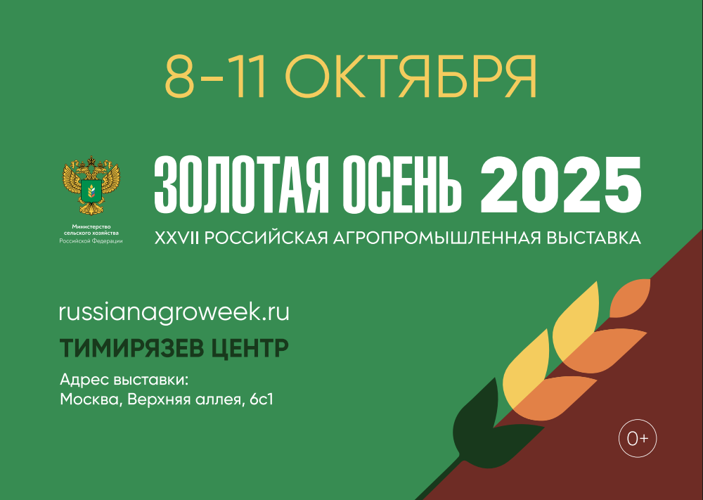 Журнал Поле.РФ выступает информационным партнером выставки «Золотая осень – 2025». С 9 по 11 октября вход на выставку свободный, необходима регистрация: https://russianagroweek.ru